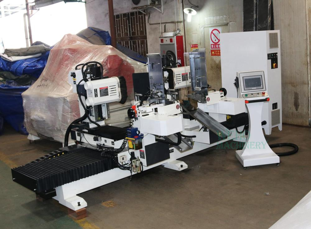 آلة تقطيع الخشب ذات التغذية المزدوجة للطرفين، 5 محاور مع وظائف تقطيع الطرف المزدوج.المميزات التقنية لآلة CNC ذات الطرف المزدوج