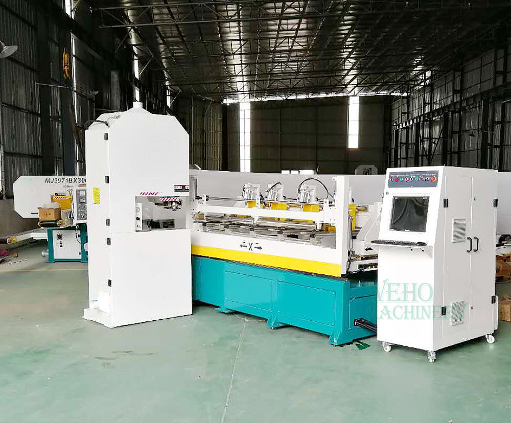 آلة منشار شريطي عمودي CNC للنجارة. مشبك قوي لدفع قطع العمل. باب أمان لمنع الحوادث. عجلة من الألومنيوم المصبوب.