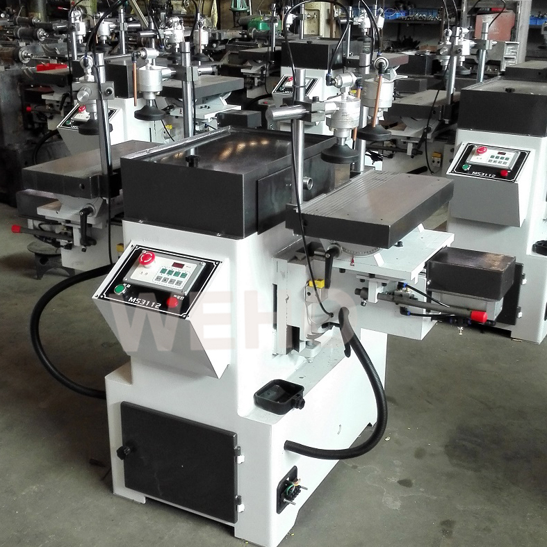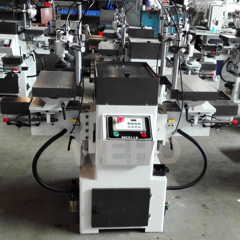ماكينة حفر الخشب الأوتوماتيكية، تدور الطاولة بزاوية 25 درجة على الجانبين الأيمن والأيسر. يتم رفع الطاولة عن طريق تدوير عجلة يدوية.