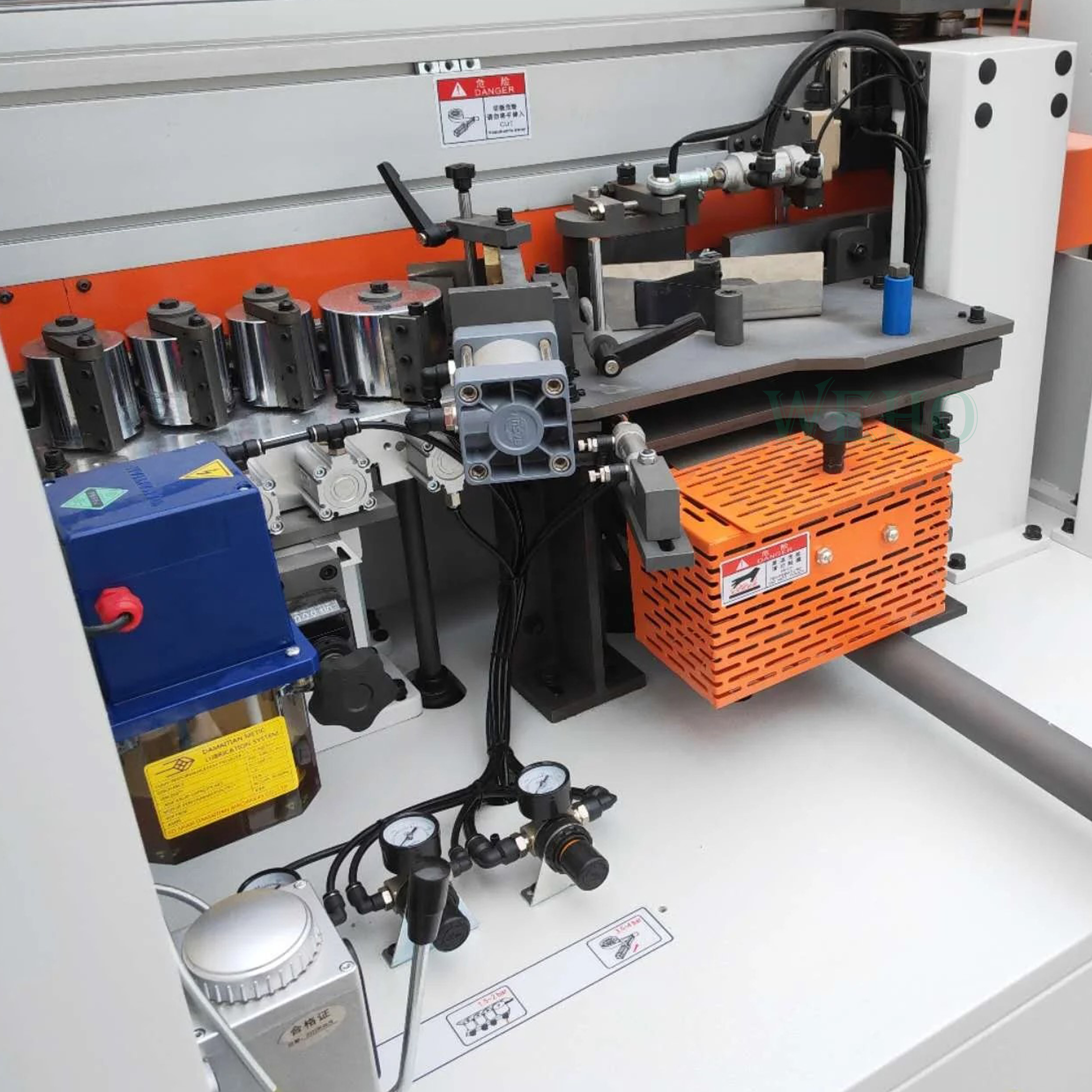 قامت شركة WEHO بتصنيع آلة ثقيلة الوزن لتناسب ظروف العمل المختلفة للتطبيق الدقيق لمواد ربط الحواف. خزان الغراء المغلف بالتفلون المبتكر الذي يعمل بمستشعر ما قبل الذوبان، والذي يستهلك غراء أقل مقارنة بآلات ربط الحواف الأخرى، مما يؤدي إلى زيادة الأرباح.