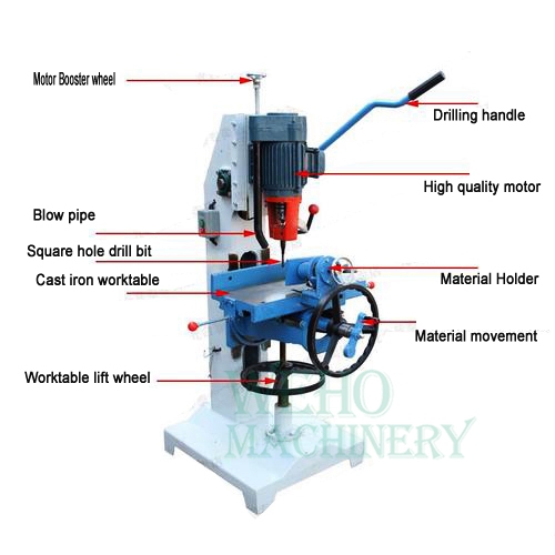 يستخدم بشكل أساسي في حفر ثقوب مستديرة أو مربعة. يعتمد حركة هوائية لرأس الحفر؛ يعتمد القاطع على جهاز نفخ غبار خاص يستخدم قوة المحرك؛ يعتمد طاولة العمل على نظام رفع وتحريك دليل ذيل السنونو.