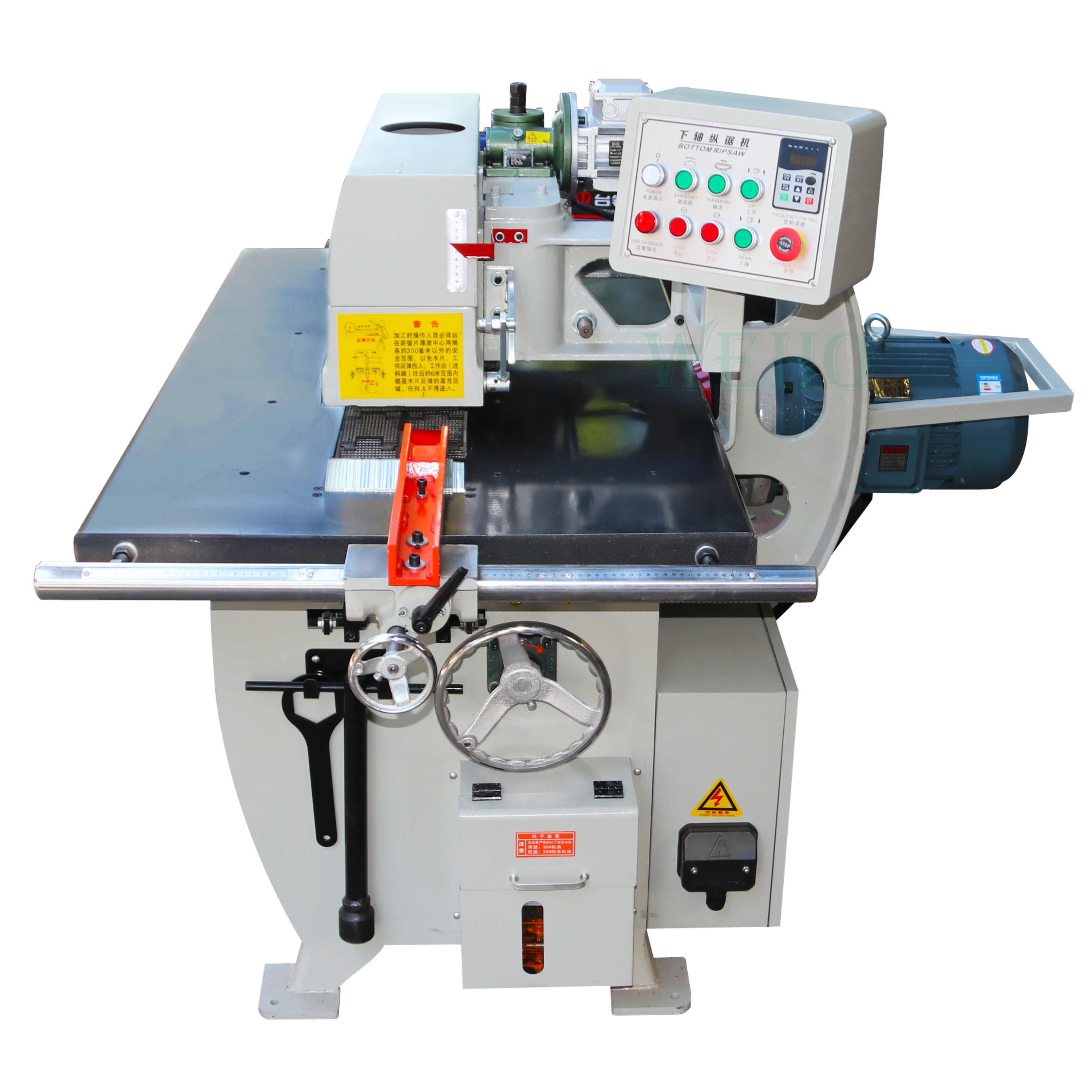 جهاز تحديد المواقع بالليزر القياسي، يقلل من هدر الأخشاب لآلة المنشار المستقيم. مضخة المعالج الدقيق للتزييت المركزي، توفر حماية من نقص الزيت وتضمن بشكل كامل تشغيل آلة المنشار وعمر الخدمة.